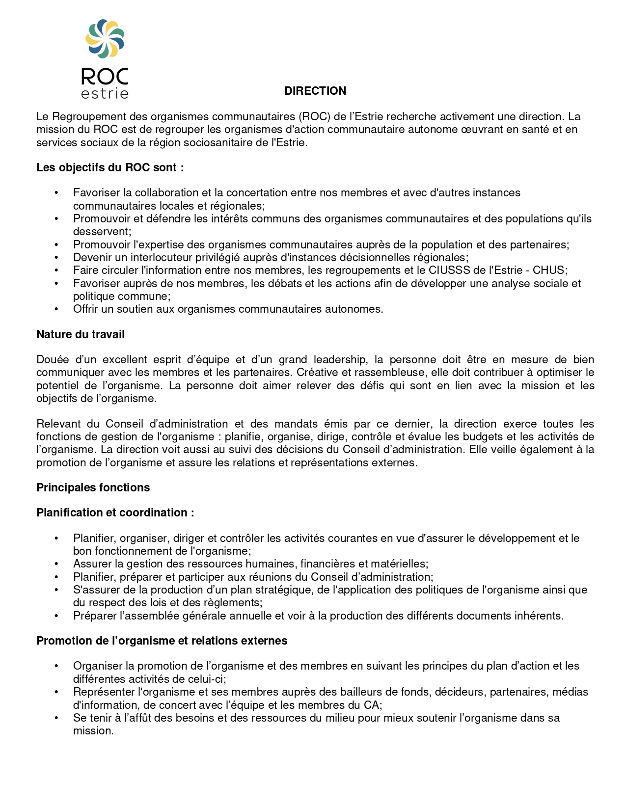 Regroupement des organismes communautaires (ROC) de l'Estrie
