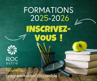 Le programme de formations que propose le ROC de l'Estrie est bonifié chaque année dans le but de participer au développement des richesses humaines des organismes communautaires de l'Estrie. Les thèmes sont choisis en fonction des résultats du sondage effectué auprès des membres en juin et des besoins soulevés par les membres à différentes occasions. Ces formations sont ouvertes aux organismes communautaires de la région, en Santé et services sociaux et Famille, membres ou non du ROC, peu importe le lieu où elles sont données en Estrie. Cependant certains ateliers peuvent être réservés exclusivement aux membres.