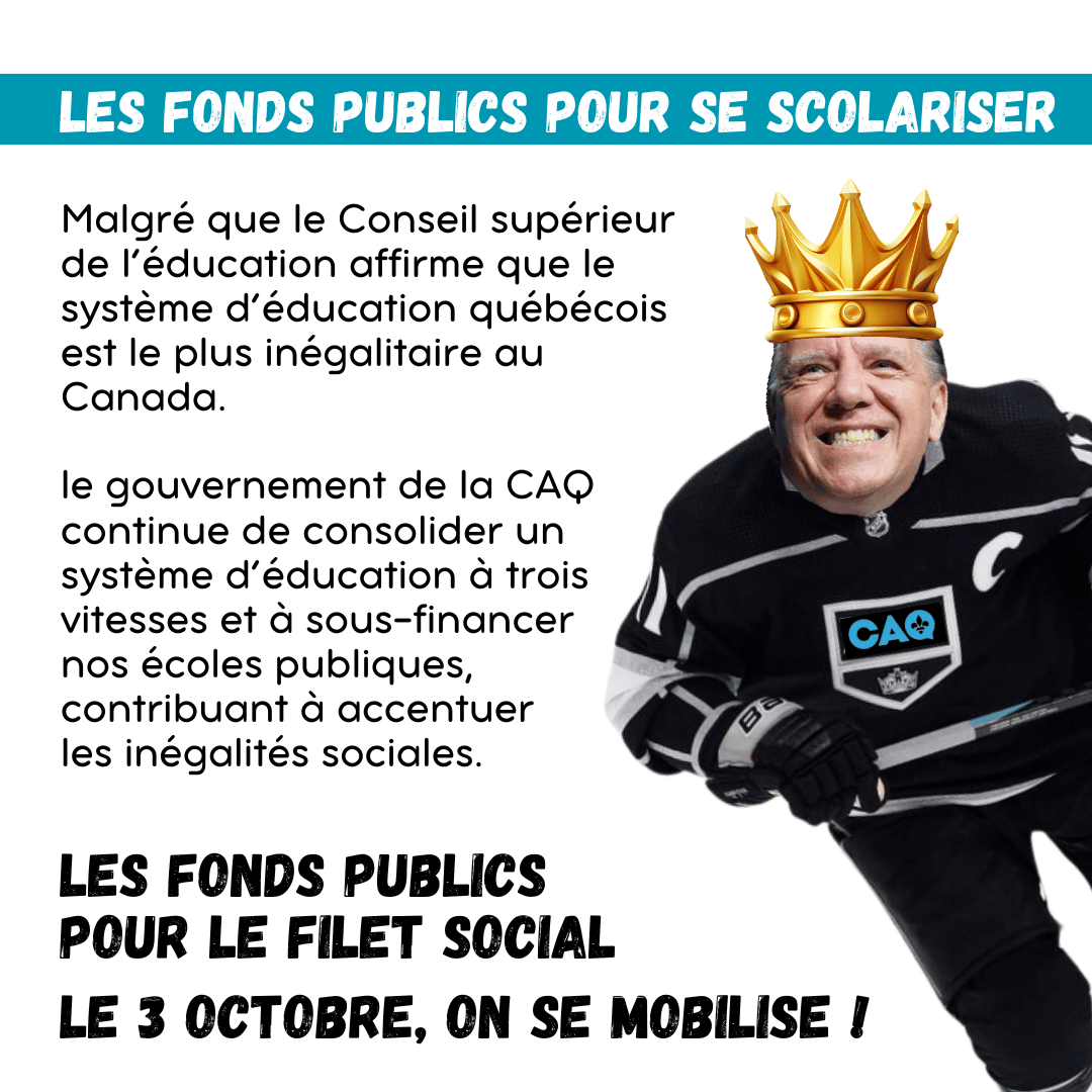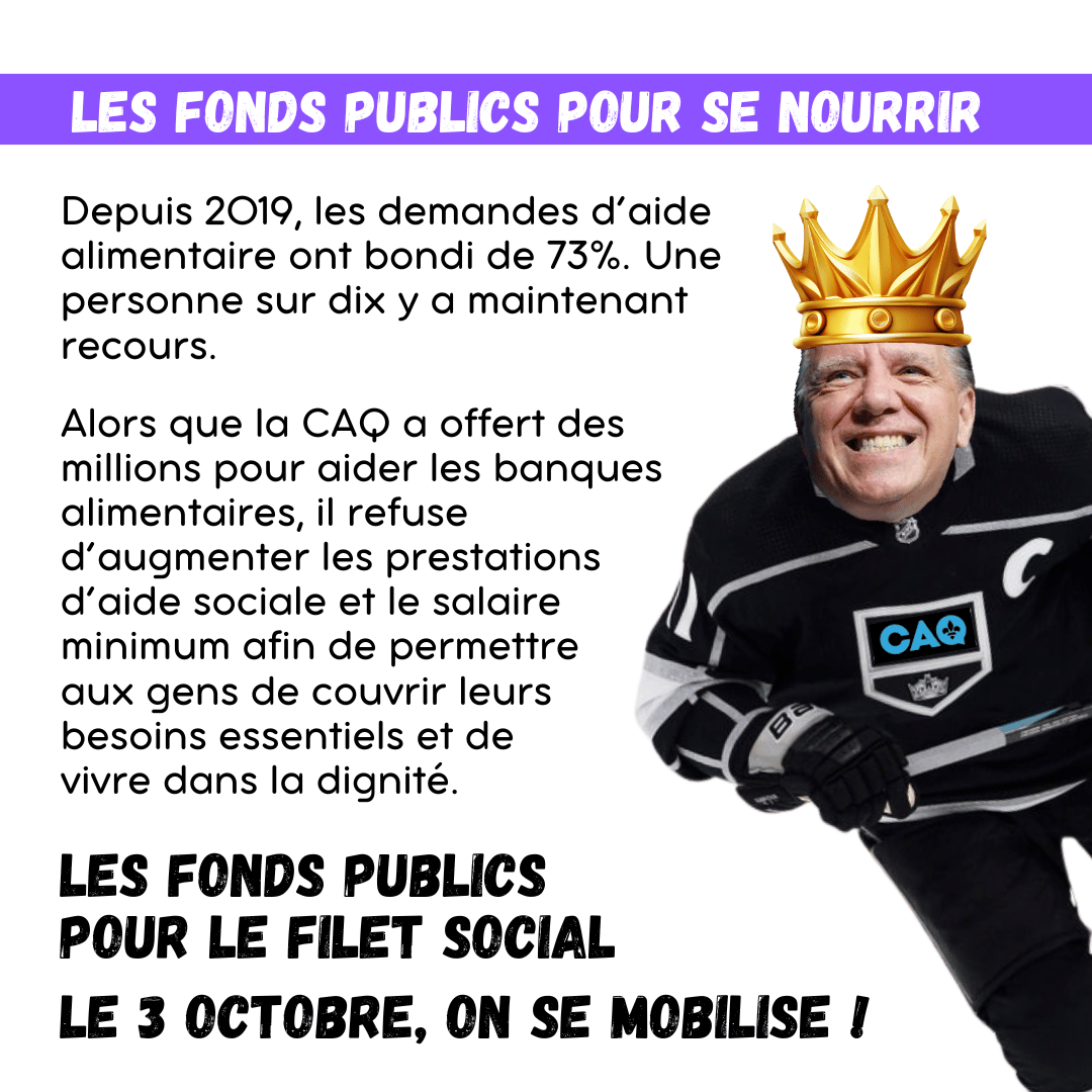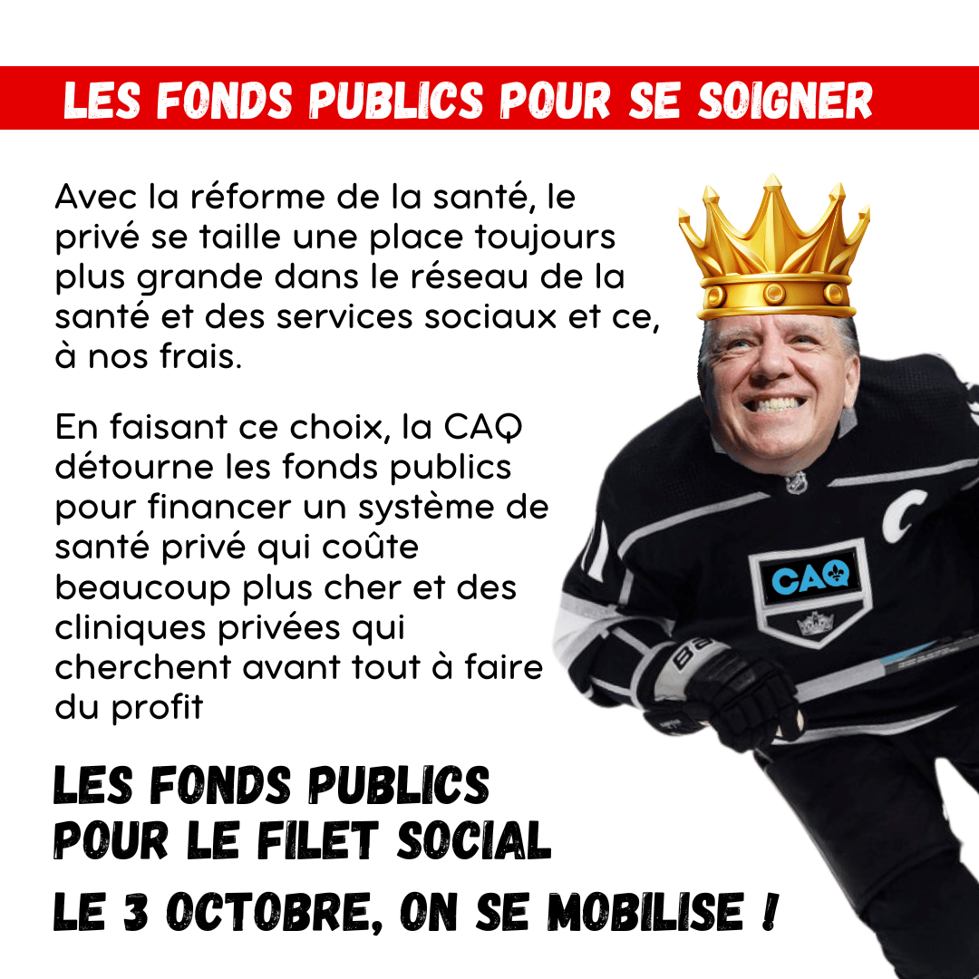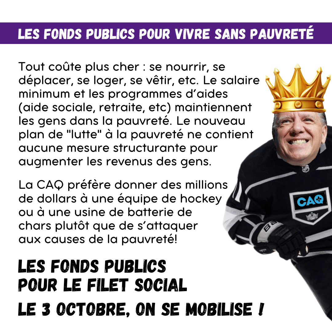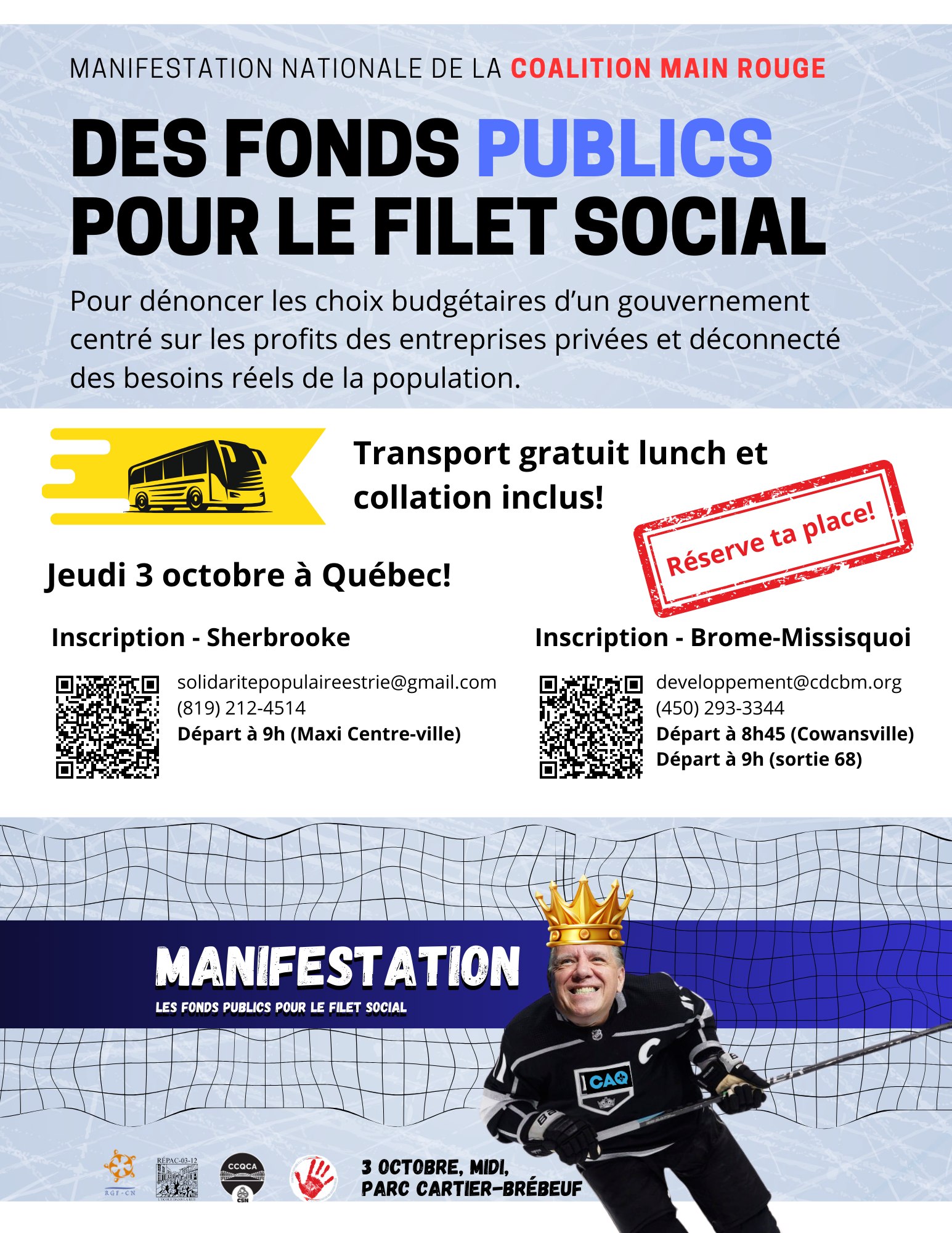 Participons en grand nombre! Tout le monde est bienvenu pour réclamer un meilleur filet social et dire stop à la privatisation de nos services publics!